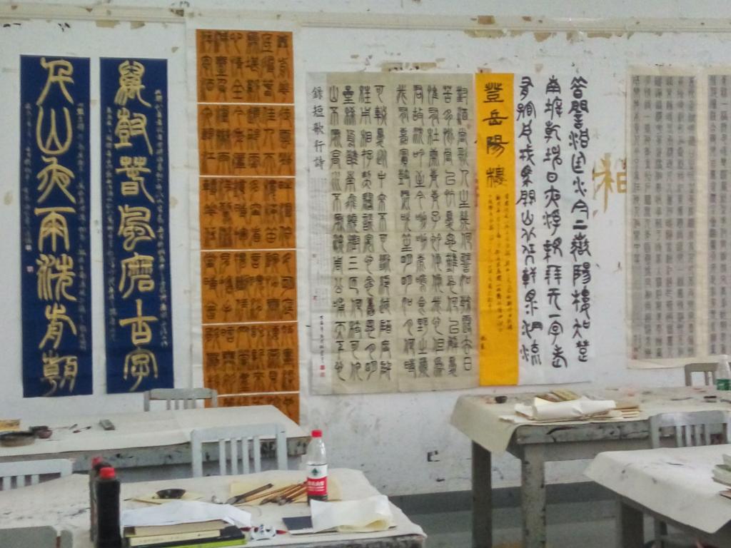 ,书法学专业有多门课程结业。在院长邹少灵、副院长谢雅强(主管教学工作)的带领下,点评了书法学专业从大一到大三共计12个班,三门课的结课作业。其中包括篆书创作、草书创作、花鸟画临摹三门课。书法技法课的授课结业蔚为壮观,差不多涵盖了所有专业教师的教学,而花鸟画临摹的授课教师阵容堪称“豪华版”,分别是院长邹少灵教授、副院长谢雅强副教授、老教授肖国崇、韩籍外教金万奎博士。