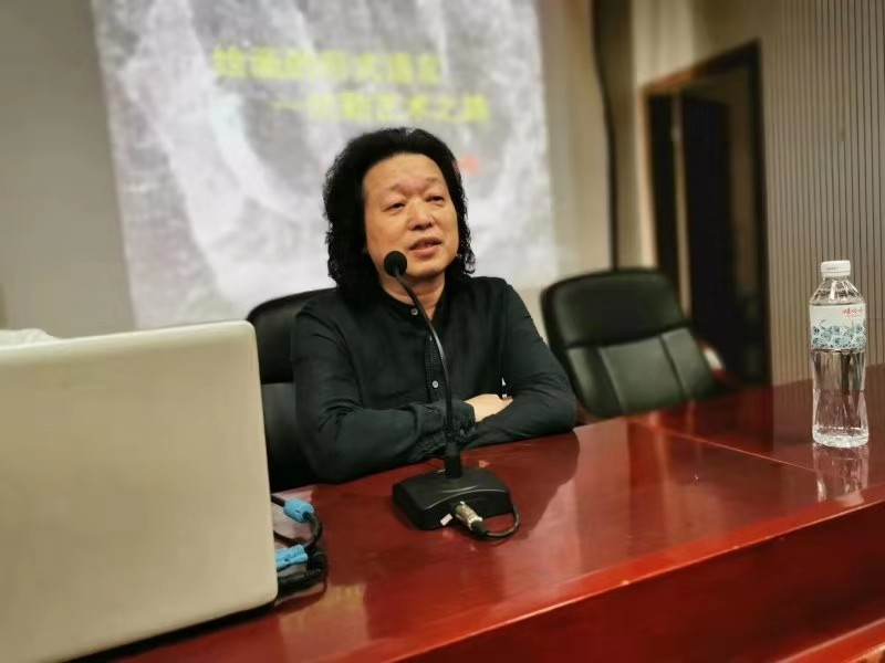 讲座从“玻卡水彩”语言的创造讲起,分为材料的寻找与发现,材料与表现语言的探索,“玻卡水彩”形式语言的特色几个方面展开。