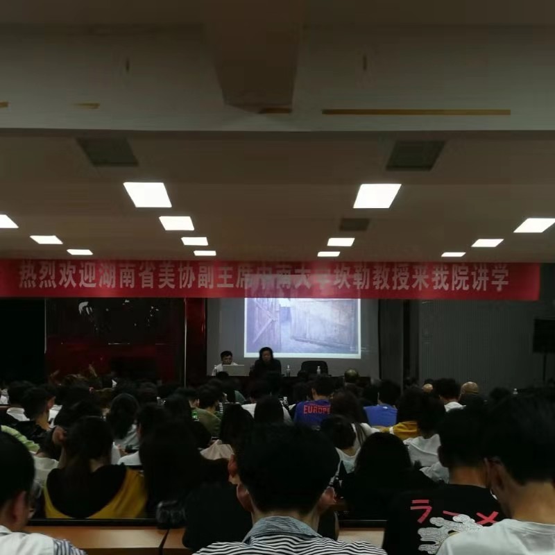 9月19日下午3点,湖南省美术家协会副主席中南大学坎勒教授应邀到学院讲学,在逸夫楼报告厅作了一场《绘画的形式语言——坎勒艺术之路》的学术讲座。学院的领导、师生近400人参加了此次讲座。讲座由副院长陆序彦主持。