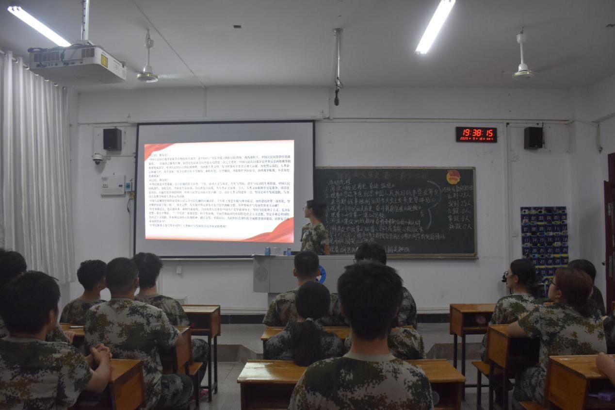 团课现场,各班级主持人首先带领同学们研读文献资料,深入解读中国人民抗日战争等重大历史事件的背景与意义,帮助大家深刻把握民族精神的核心内涵。随后,同学们共同观看历史影像,鲜活的画面直观呈现革命先烈的奋斗历程,让大家在细节中感悟历史与现实的紧密联系,进一步筑牢正确历史观与和平信念。