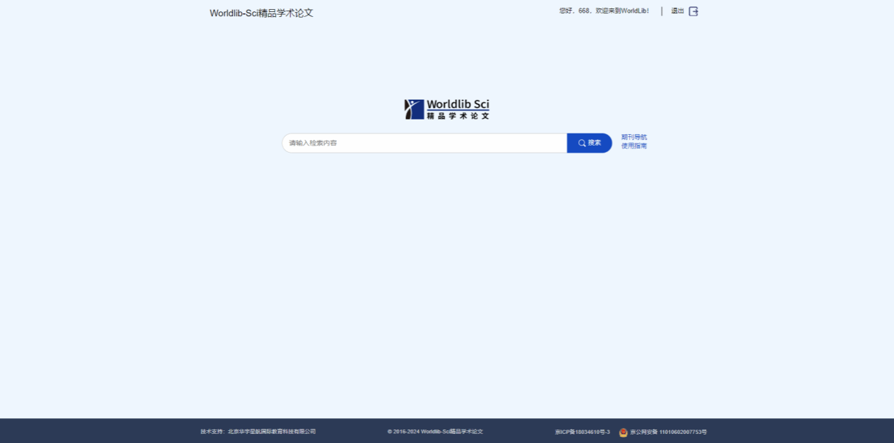(1)如下图是该数据库首页,首页可以直接进行文章检索,也可以打开期刊列表页进行期刊检索。