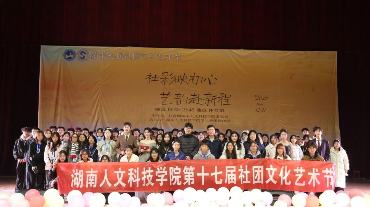 12月21日,以“社彩映初心 艺韵赴新程”为主题的湖南人文科技学院第十七届社团文化艺术节圆满落幕。校团委书记刘佳、挂职副书记何松出席活动,1200余名师生齐聚海园广场与体育馆,共赴这场集互动体验与文艺展演于一体的校园文化盛宴。