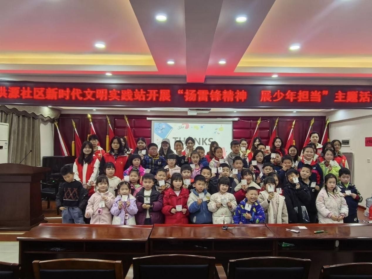 童心筑梦育新苗,专业赋能传精神。外国语学院赴洪源小区开展活动,融英语教学与雷锋精神宣讲,通过唱红歌、演情景剧与孩子互动;文学院开展 “守护童心 绿色同行” 活动,设现场创作区引导制作环保手工;信息学院开设 E 路筑梦课程,为社区学生提供学业与信息技术辅导;商学院赴市社会福利院,以雷锋精神宣讲、学业辅导、趣味游戏为孩子送去陪伴。