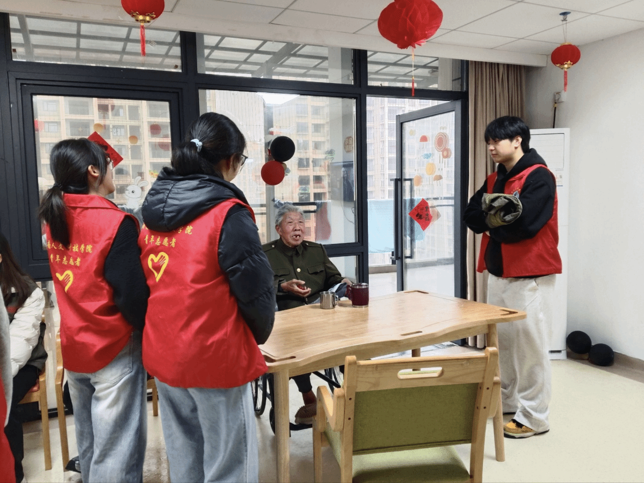 敬老爱老传温情,美德践行暖人心。各学院聚焦老年群体需求,开展多场暖心敬老志愿服务。教育学院志愿者走进娄底康养康复医院,以才艺表演、闲话家常、院区清洁为老人驱散孤寂;能源与机电工程学院赴福星老年公寓,送鲜果、演才艺,兼顾老幼陪伴;法学院为新建社区独居空巢老人送物资、做普法,融法治守护与敬老关怀;体育学院在康复养老中心展武术、清场地,以专业传递健康关怀;商学院走进健乐仁爱医养院,带老人做运动、玩游戏、演节目,让老人在欢声笑语中感受温暖,将尊老敬老美德与雷锋精神深度融合。
