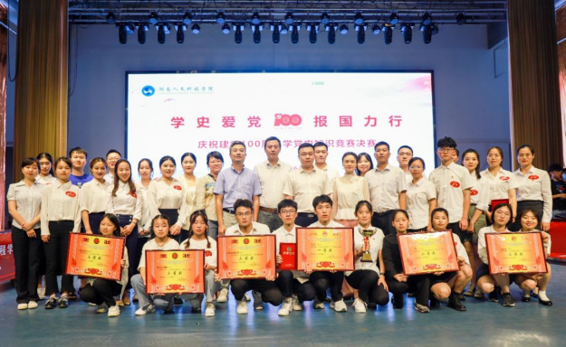 本次决赛不仅有传统的必答题、抢答题和风险题,也创设性的增加了情景演绎题和区域英雄赞歌抢答环节。赛场上,选手们沉着应对、机智抢答、配合默契。而特邀点评嘉宾谢科峰博士精彩的题目解析不仅让在场的观众学习了党史知识,幽默风趣的点评更是博得了观众的热烈掌声。经过激烈角逐,信息学院夺得桂冠,外国语学院和商学院获得二等奖,数学与金融学院、马克思主义学院和材料与环境工程学院获得三等奖。马克思主义学院张得才老师、外国语学校曹瑜虹老师和信息学院彭列旨同学凭借在比赛中优异的表现荣获“优秀选手”。