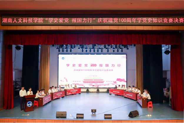 6月22日下午,我校在逸夫楼音乐厅举行“学史爱党 报国力行”党史知识竞赛决赛。校党委书记刘和云、党委副书记李军林、副校长曹鑫、中共娄底市委党史研究室副主任张凯出席,学校相关部门负责人及600余名师生一起观看了比赛。比赛还邀请了马克思主义学院谢科峰博士、成赛军博士担任特邀点评嘉宾。