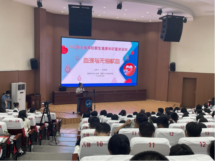 9月28日晚,2022年健康中国行暨全省高校新生健康知识巡讲活动在湖南人文科技学院匠成楼报告厅举行。娄底市中心血站工会主席肖磊、校团委副书记刘佳和300余名2022级新生一起聆听了讲座。娄底市疾病预防控制中心科主任袁利和、娄底市疾病预防控制中心结防室主任邱光前、市中心血站讲师肖莎菲担任本次讲座的主讲人,讲座全程线上直播,全校各班级统一在线收看了讲座。