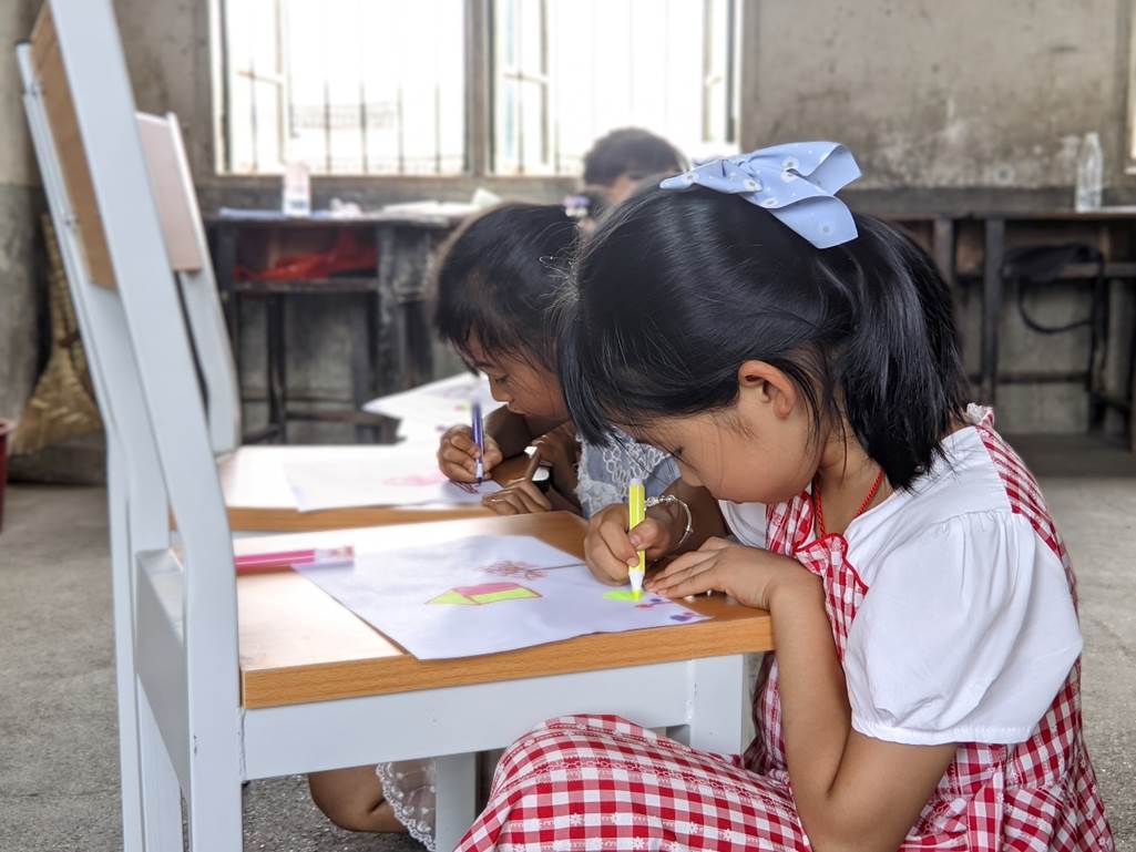 (图为孩子们正在画出自己喜欢的东西)
