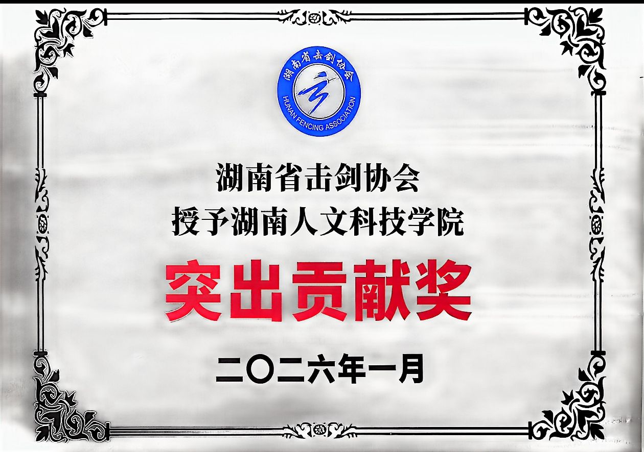 近日,湖南省击剑协会对2025年度为全省击剑运动发展做出重要贡献的单位和个人进行表彰。我校荣获“突出贡献奖”。