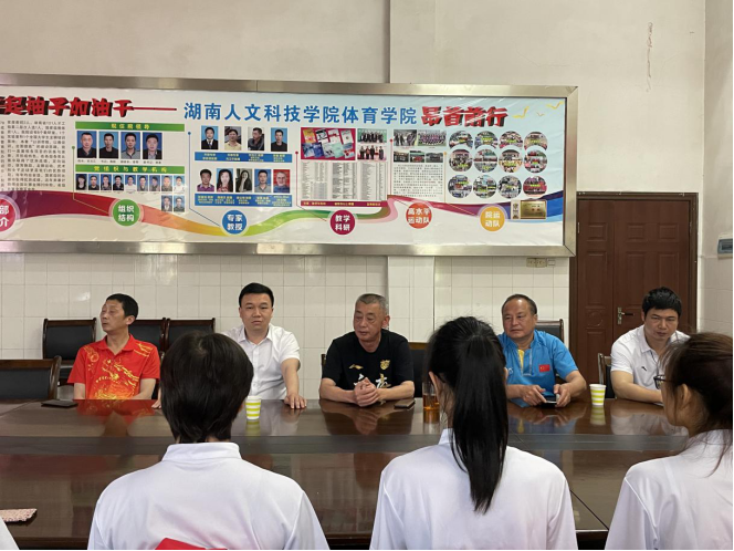 会上,学校副校长曹鑫向全体教练员及运动员表示慰问,鼓励大家继续保持体育生的精、气、神,要求全体教练员、运动员发扬湖南人文科技学院的优良传统;体育学院院长深情勉励大家:我校武术、跆拳道成绩一直以来都名列前茅,运动员无论在精神上还是意志上都不输给别人,在这种精神的传递中,传承的结果靠大家一起努力