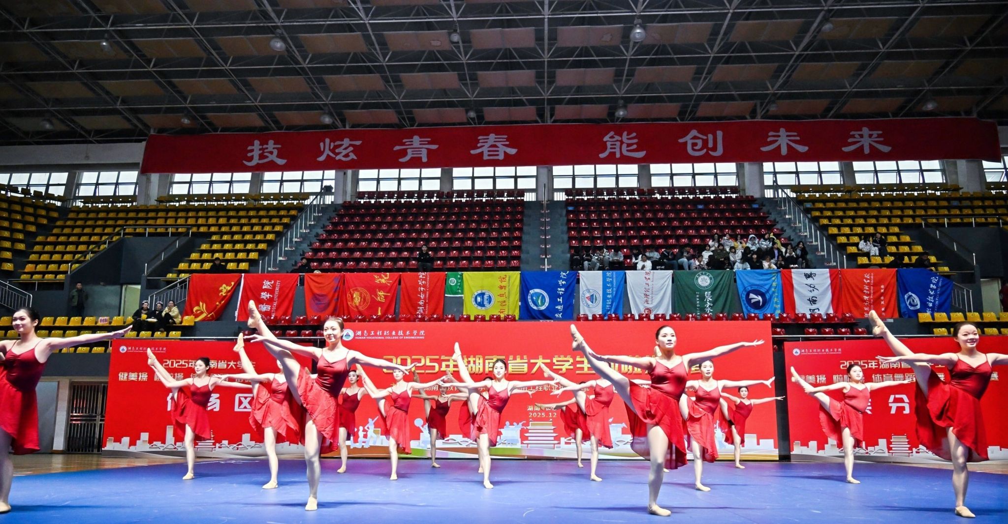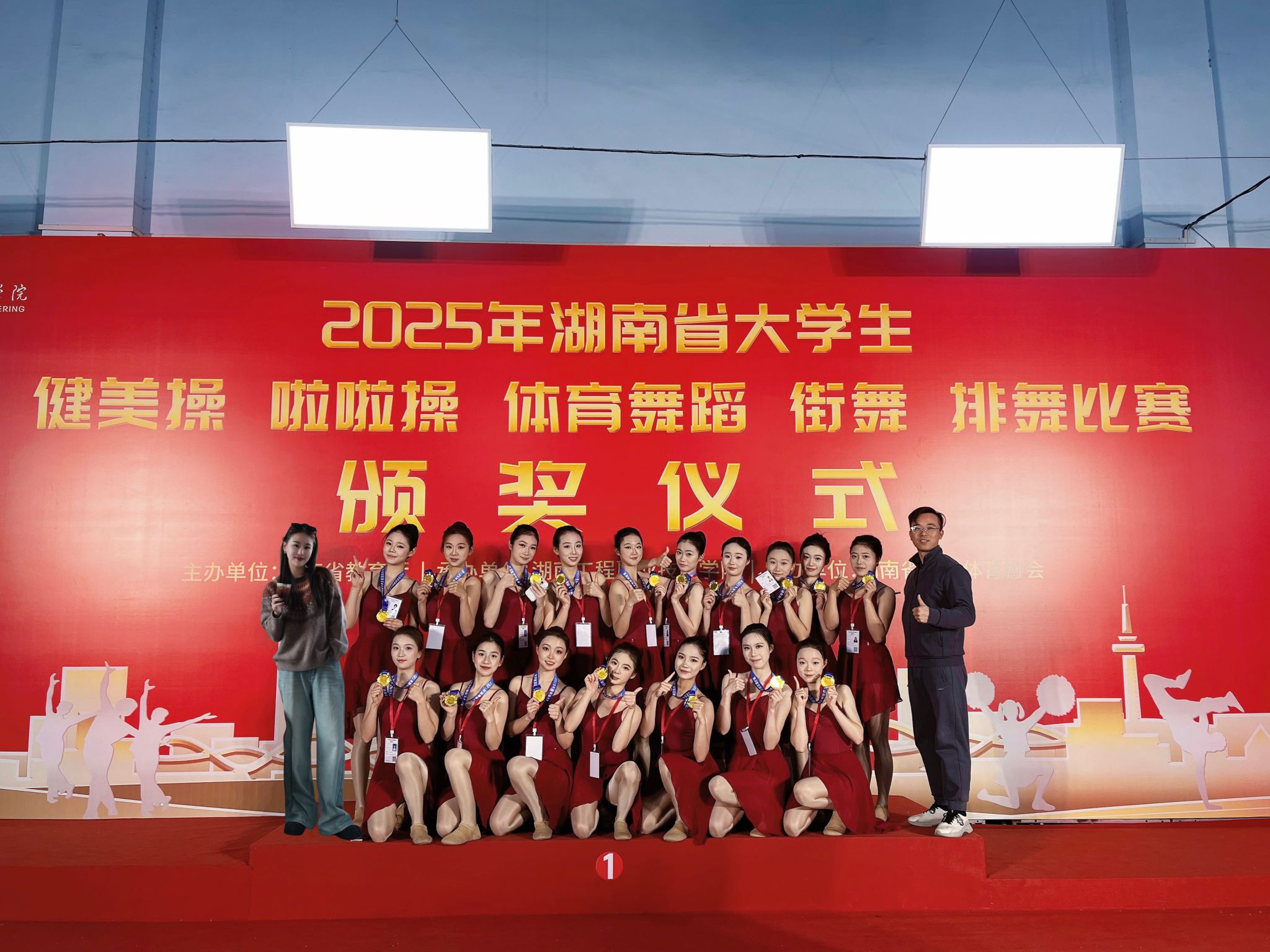 2025年12月,捷报频传!在刚刚落幕的2025年湖南省大学生啦啦操比赛中,湖南人文科技学院啦啦操队凭借出色的表现和极具感染力的舞台呈现,从众多高校代表队中脱颖而出,荣获自选集体爵士项目一等奖,再次展现了我校学子昂扬向上的精神风貌与扎实的专业素养。