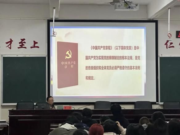 为加强党纪学习教育,提升入党积极分子纪律意识,2025年11月3日晚,外国语学院党总支书记李霞在播馨楼406教室,为外国语学院分党校、马克思主义学院分党校及研究生教育学部直属党支部第38期入党积极分子主讲党章党规党纪专题党课。
