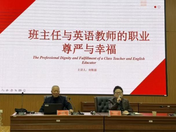 讲座中,何贻新老师以“班主任与英语教师的职业尊严与幸福”为主题,围绕班主任工作的诀窍、原则、策略,以及英语教师的基本功与提升建议展开分享,寄语英语专业毕业生争做“四有”好老师。结合自身积淀的丰富实践经验,他围绕职业尊严的核心要义与幸福教育的实现路径进行深度剖析,以一个个生动鲜活的教学案例为切入点,阐释了英语教师如何凭借扎实的专业素养彰显教学价值,班主任如何以厚重的责任担当筑牢育人的坚实桥梁,引导实习生在未来岗位上更好地平衡职业理想与实践挑战。