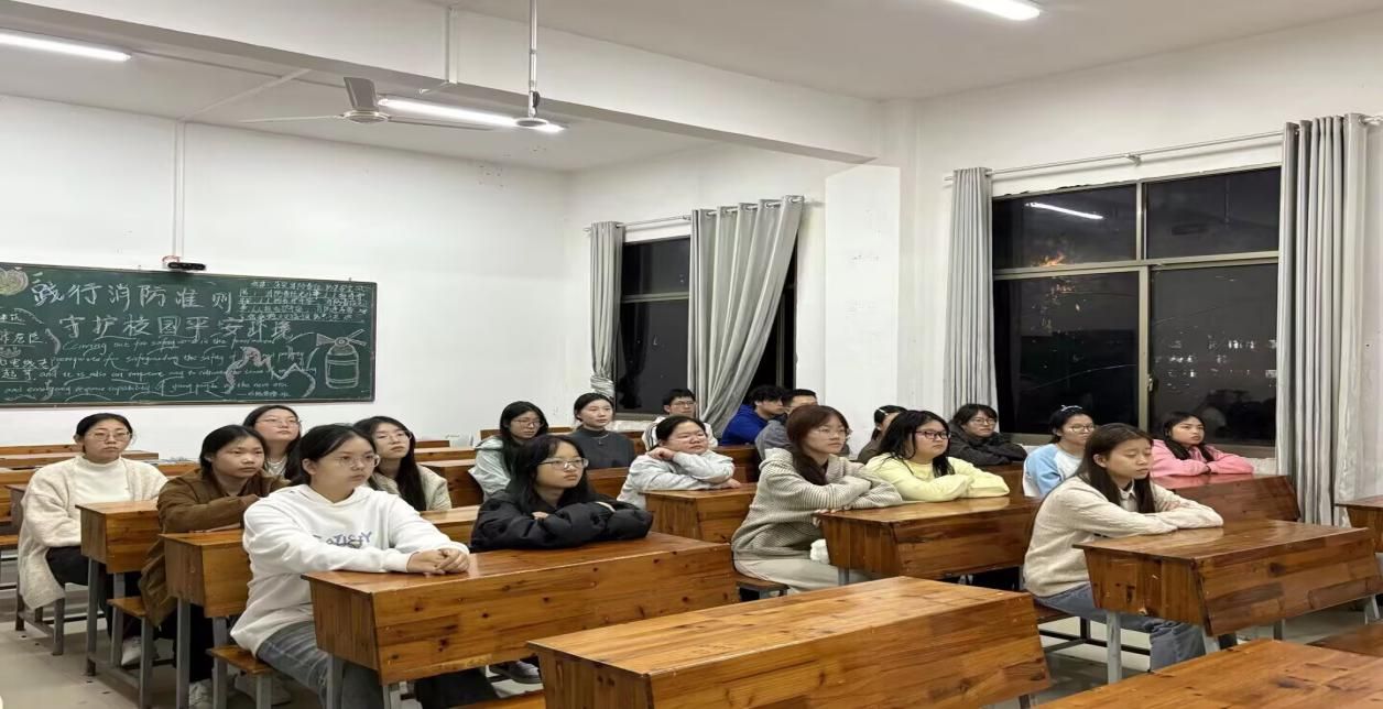 11月5日晚,外国语学院25级各团支部在播馨楼开展“践行消防行动准则,守护校园平安环境”主题团课活动。