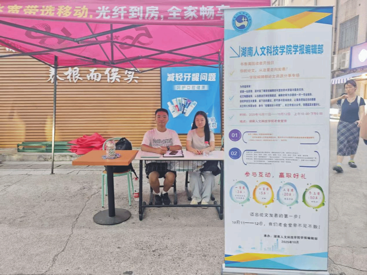 本次活动以“线上互动+线下赠阅”相结合的方式开展,既提升了学报公众号的关注度,也实现了学术资源与师生需求的有效对接。活动中,编辑部志愿者以《湖南人文科技学院学报》《大学生创新创业学报》投稿审稿规范为核心,结合学术论文写作发表的关键要点,为广大师生提供面对面咨询答疑服务。同时,活动现场特别设置“扫码关注公众号抽奖”互动环节,参与学生可免费获赠相关礼品和《湖南人文科技学院学报》书籍。