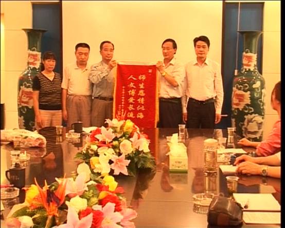 6月3日下午,明德楼第一会议室,当代大学生的优秀代表蒋小波的亲属风尘仆仆从益阳赶来学校,将一面写有“师生恩情似海,人文博爱长流”的锦旗赠送给学校,党委书记姜正国、校长柏连阳代表学校接受锦旗并向小波亲属表示深切慰问。