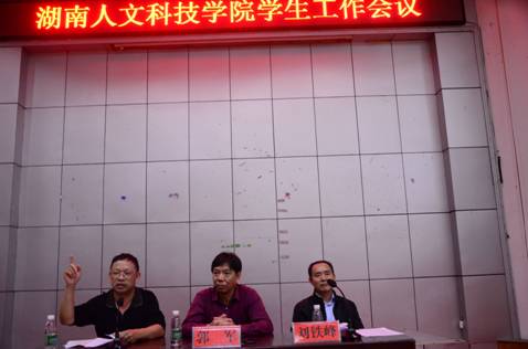 10月17日晚,我校在匠成楼报告厅召开学生工作会议。学校党委书记郭军,副校长刘铁峰,宣传部、武保处、学工处等部门领导,各学院书记、副书记、辅导员和班主任老师参加本次会议,会议由副校长刘铁峰主持。