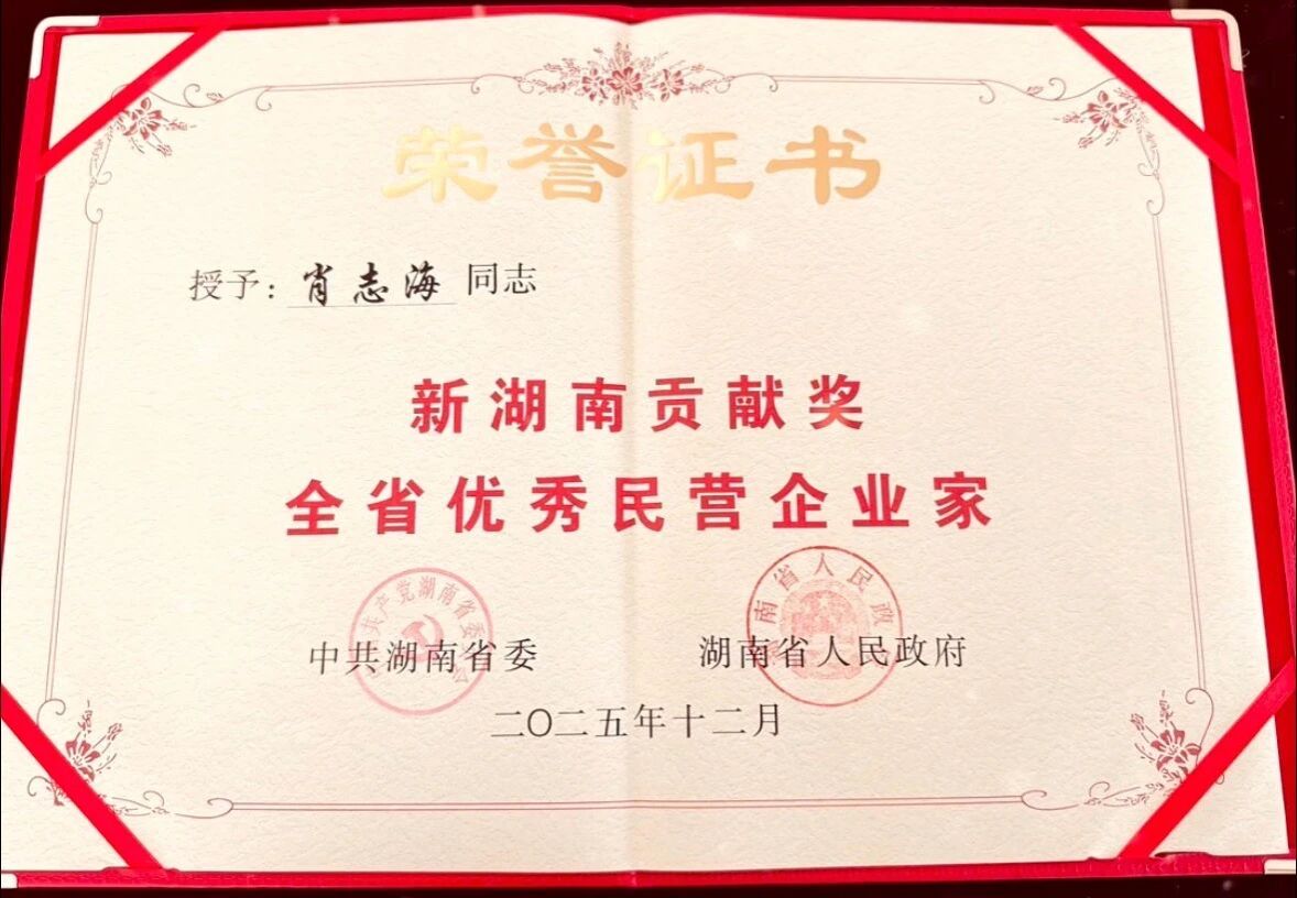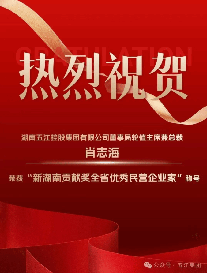 “新湖南贡献奖全省优秀民营企业家”荣誉的授予,是对肖志海校友个人担当的高度认可,也是对五江集团扎根湖南、实业报国、赋能发展的充分肯定,更是我校人才培养质量的生动展现与有力印证。