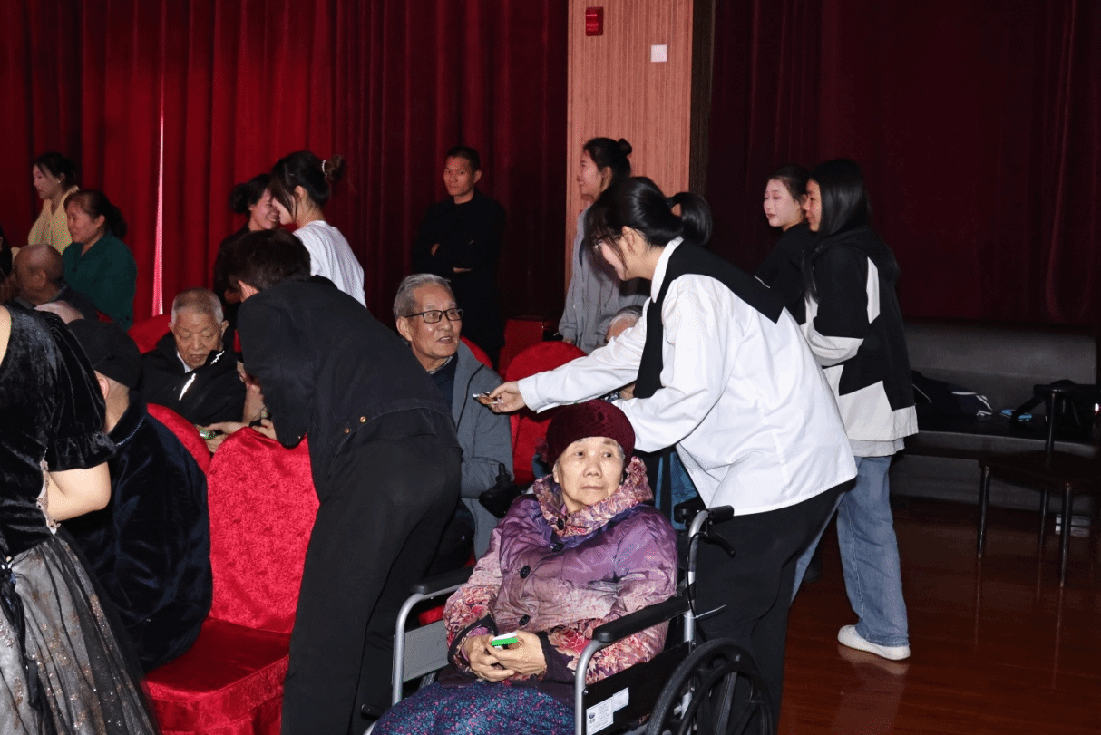 2025年10月28日,在重阳佳节来临之际,湖南人文科技学院音乐舞蹈学院“艺束光”志愿服务队联合学院教工第一、二党支部及学生第一、二、三党支部,共同前往康怡乐养老院开展“情暖金秋·爱在重阳”主题党日活动。此次活动是学院推动“党建+专业+志愿服务”深度融合的生动实践,展现了师生党员服务社会、奉献爱心的责任担当。