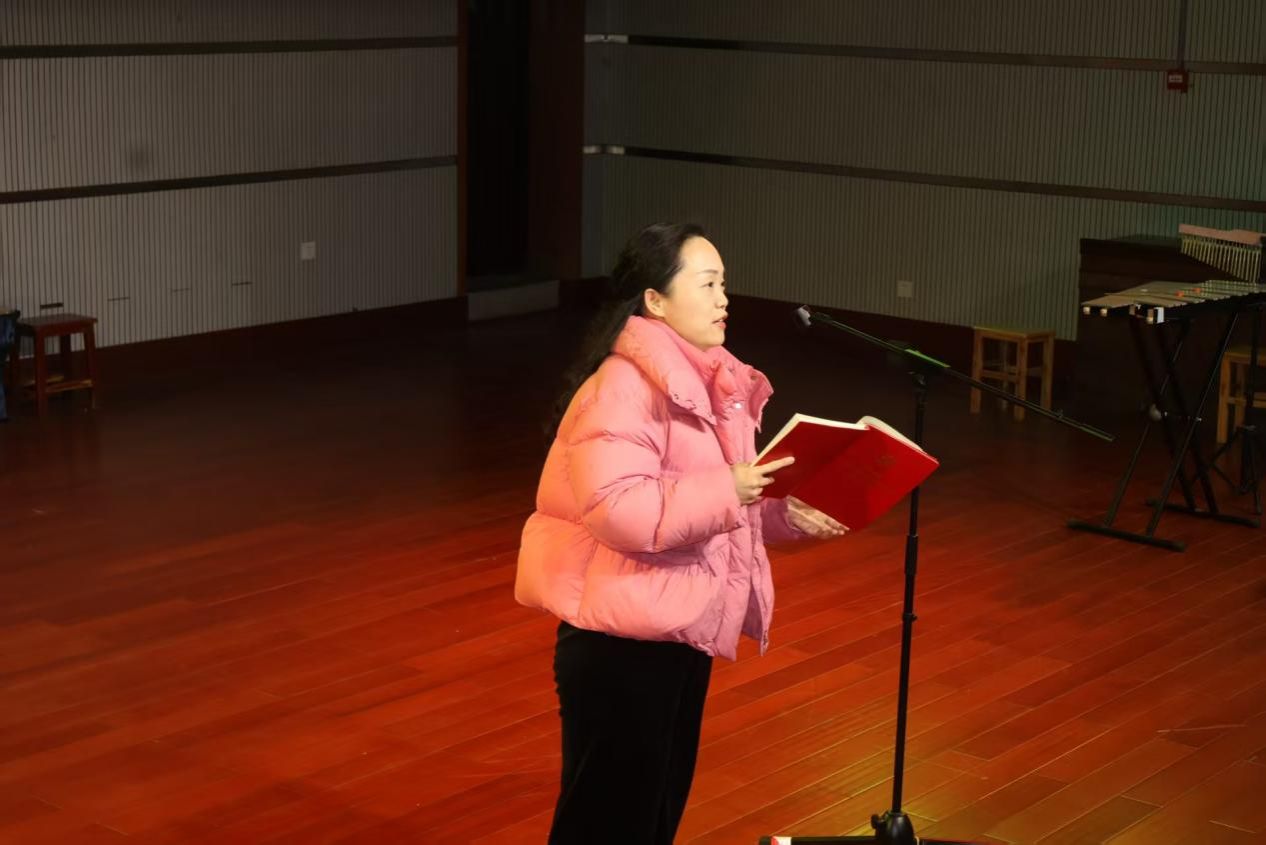 表演结束后,特邀点评专家杨帆老师对各队伍的创意构思与舞台呈现给予点评,并结合中小学一线音乐课程教学经验,从曲目适配、互动设计、学情分析、情绪情感表达等方面给出了针对性建议,正如杨帆老师所说,通过这门课程的学习,同学们可以说掌握了十八般武艺,但真实的一线音乐课堂,不需要十八般武艺样样登场,而是要学会在面对教材、面对不同的学生、面对不一样的课堂环境时合理利用这些“武艺”。随后,颜春英副院长上台致辞,祝贺音乐会圆满成功,并强调本次音乐会是学院落实课堂教学改革、培养应用型人才的重要实践载体,要求同学们以此次音乐会为起点,深耕音乐教育教学理论、精进艺术实践能力、坚持创新驱动发展,逐步成长为兼具理论素养与实践能力、契合新时代美育事业高质量发展需求的高素质音乐教师。