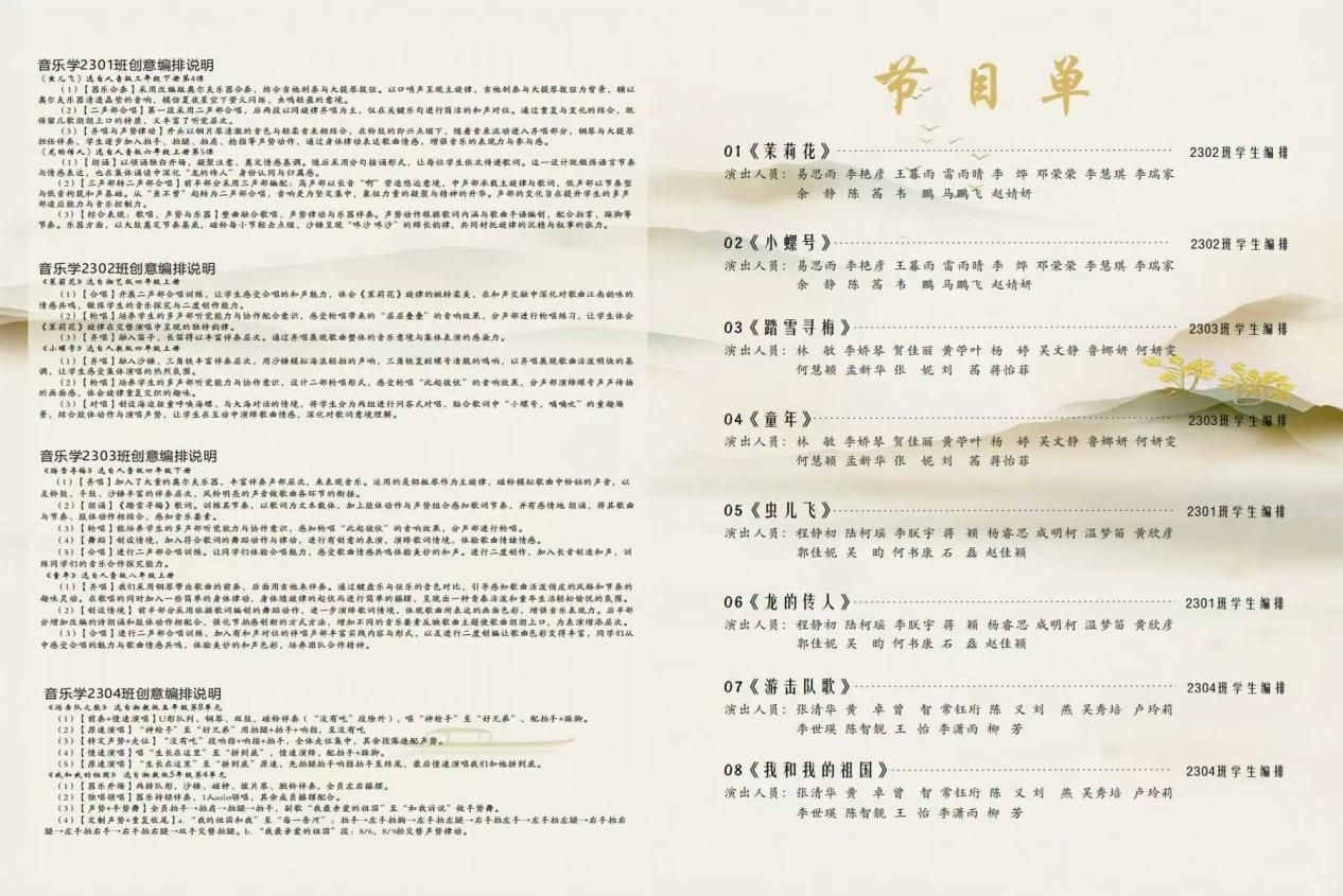 音乐会伊始,主持人登台致开场词,明确本次音乐会是2023级音乐学一至四班课程学习成果的集中展示,也是同学们对未来学校音乐教育和学校美育工作的探索与预演。