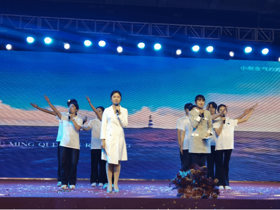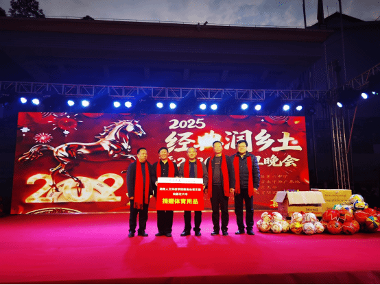 以《快乐舞步》欢快的节奏为开场,活动正式拉开帷幕。整场活动共呈现十余个节目,囊括舞蹈、朗诵、歌唱、话剧、小品、器乐演奏等多种艺术形式。由学院师生共同演绎的朗诵《月光下的中国》《灯塔的一束光》情感真挚动人,传递出对家国的深厚情感;舞蹈《念师恩》轻柔舒缓,以富有张力的表现形式传达出“师者如光,微以致远”的精神内涵;话剧《觉醒年代》《回家》情节感人至深,演员表演投入,赢得现场观众阵阵掌声;京胡独奏《夜深沉》、合唱《天耀中华》等节目展现了传统文化的深厚底蕴与时代特色。活动期间,湖南人文科技学院教务处党支部向新化县第六中学捐赠了体育用品,以实际行动助力乡村教育发展,传递对乡村青少年学生的关爱与期望。
